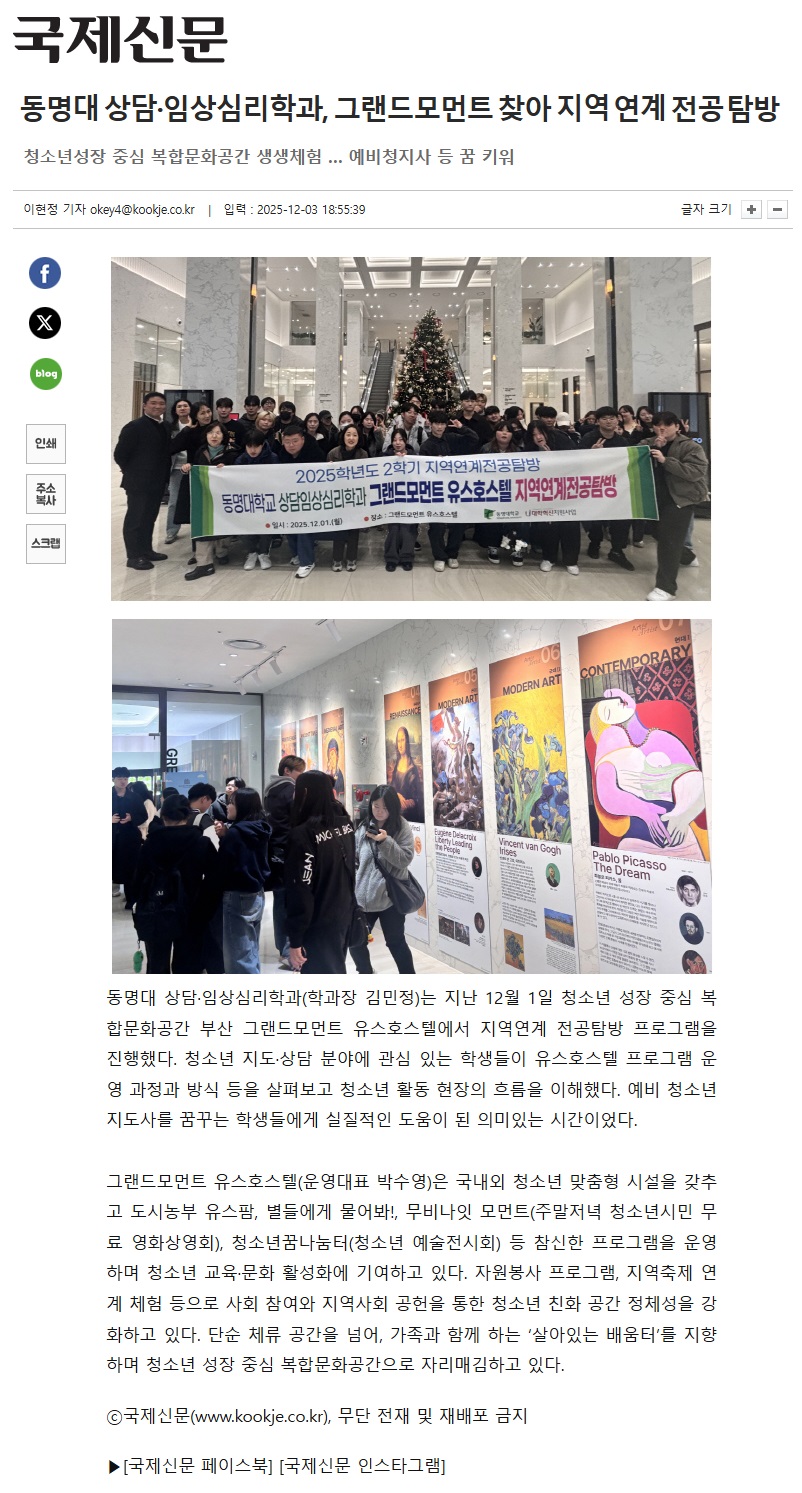 2025년 12월 03일자 [국제신문] 동명대 상담·임상심리학과, 그랜드모먼트 찾아 지역 연계 전공 탐방
