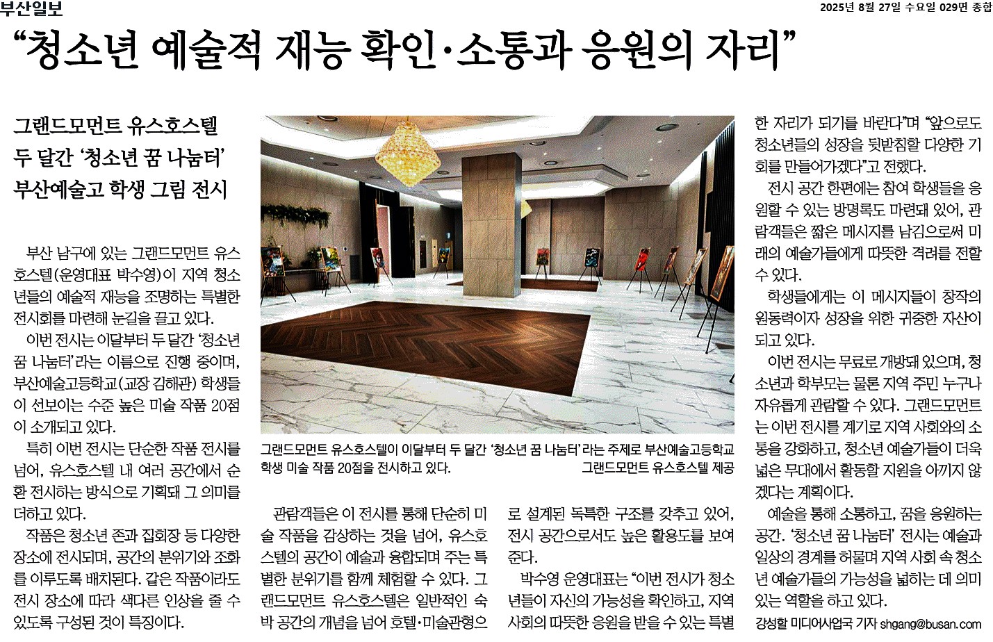 2025년 08월 27일자 [부산일보]_청소년 예술적 재능 확인 소통과 응원의 자리 출처 : https://www.busan.com/view/busan/view.php?code=2025082517501717547