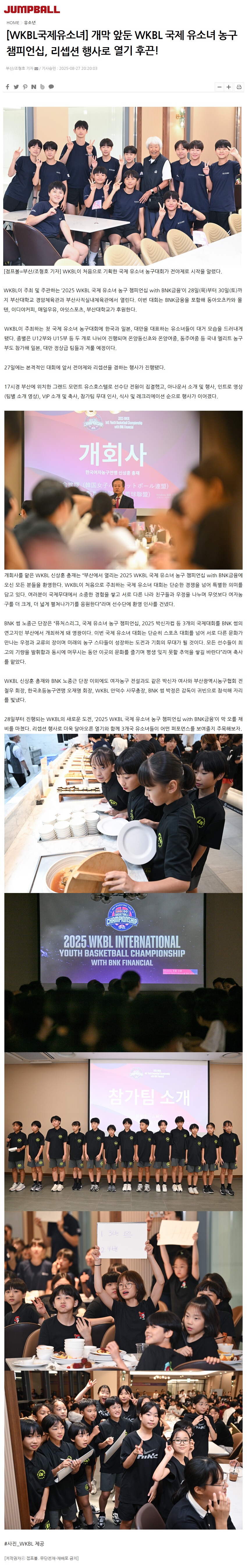2025년 08월 27일자 [점프볼] [WKBL국제유소녀] 개막 앞둔 WKBL 국제 유소녀 농구 챔피언십, 리셉션 행사로 열기 후끈!